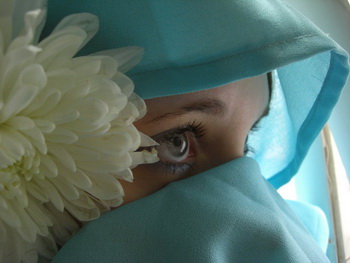 The niqab may be made of two, three or four layers, the bottom layer on face is usually made of cotton breathable fabric, one of the layer known as “eye screen” is made of a net or tulle fabric and other layers are made of Chiffon. The niqab could be fastened on back of head by snaps, Velcro or tie back, the best from usage point of view is the tie back. Usually the niqab is Black in color but now it is available in other colors usually dark colors as Navy Blue and Brown to match the clothing women is wearing.